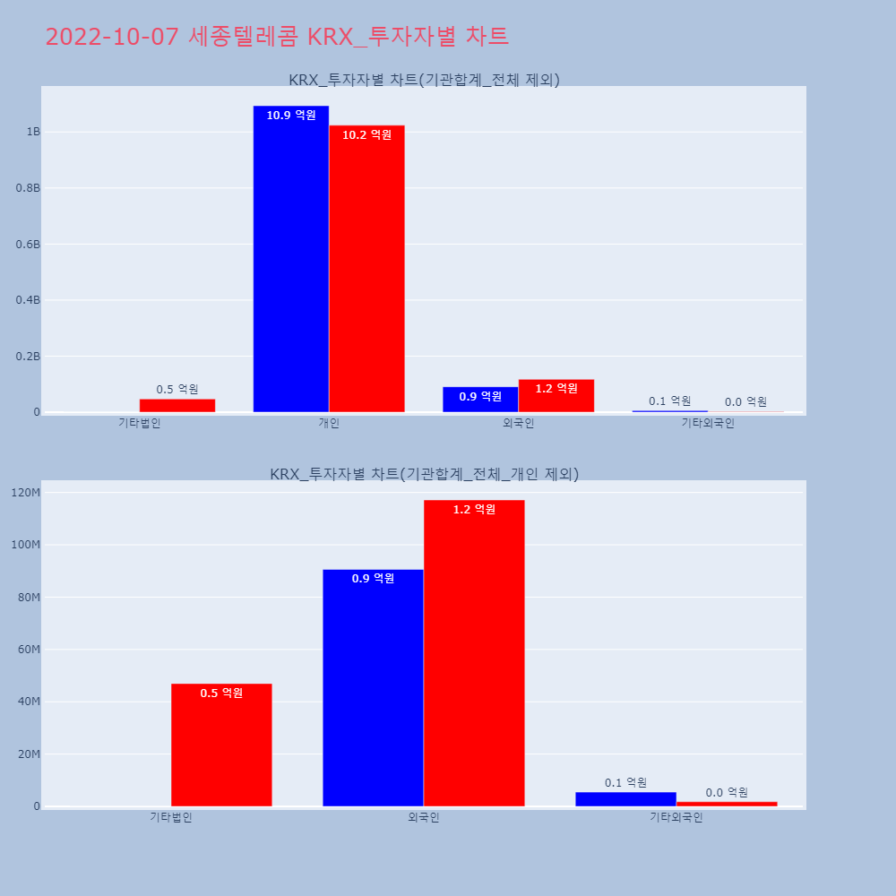 | 투자기관 | 거래량_매도 | 거래량_매수 | 거래량_순매수 | 거래대금_매도 | 거래대금_매수 | 거래대금_순매수 |
