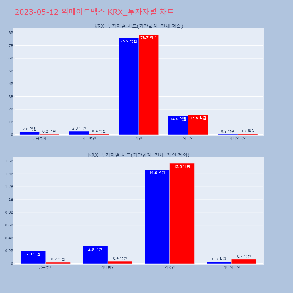 | 투자기관 | 매도량/금액(백) | 매수량/금액(백) | 순매수량/금액(백) |