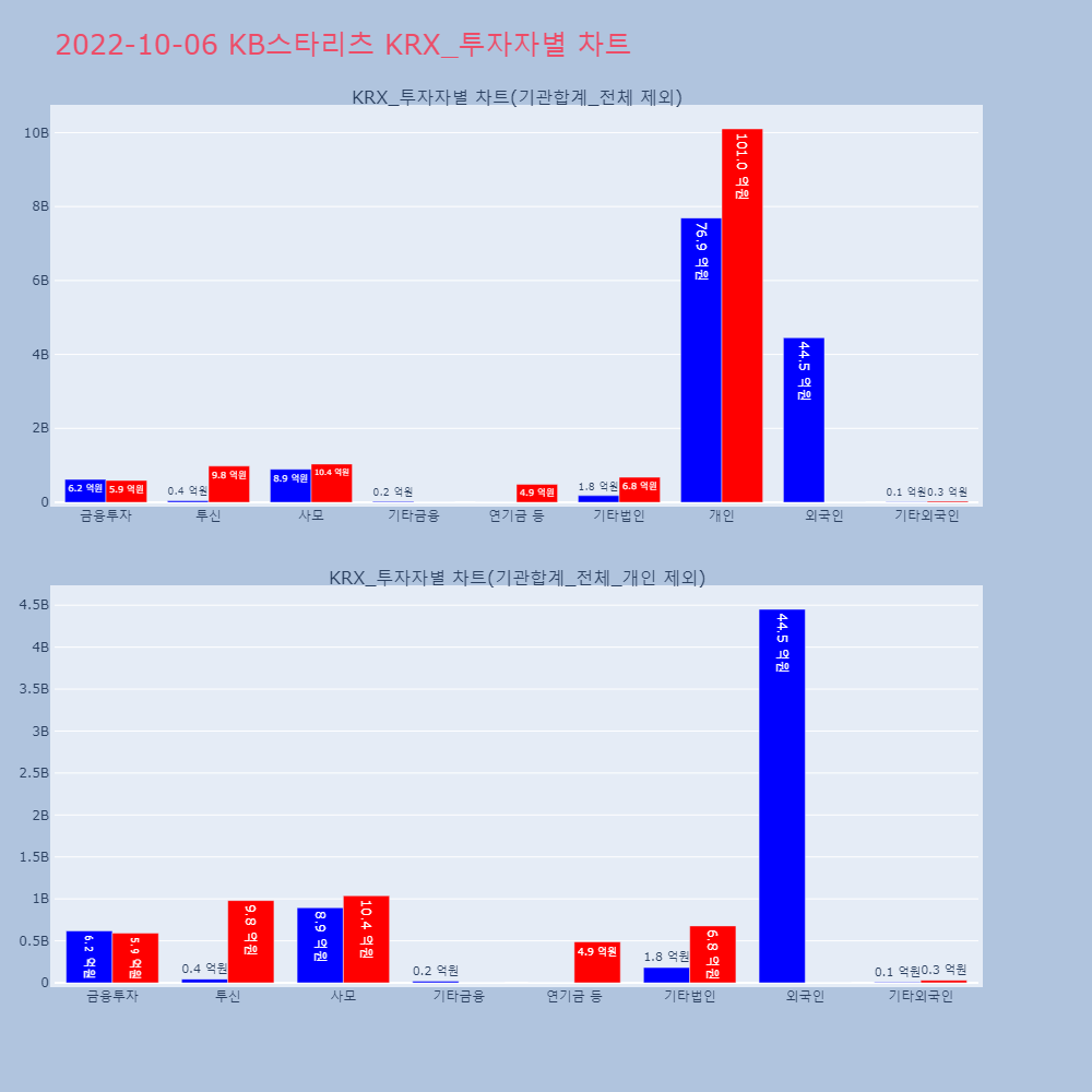 | 투자기관 | 거래량_매도 | 거래량_매수 | 거래량_순매수 | 거래대금_매도 | 거래대금_매수 | 거래대금_순매수 |