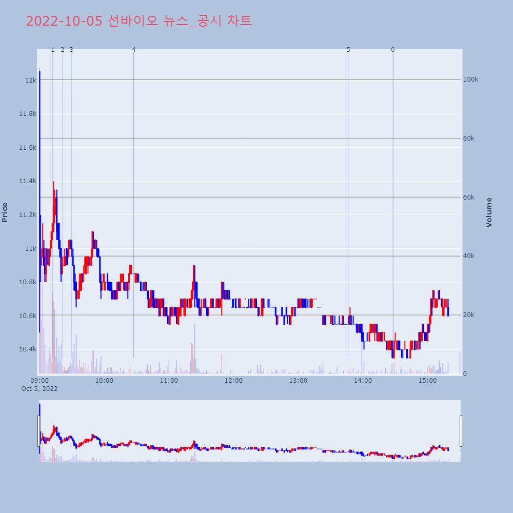 | 6 | 선바이오, 코스닥 이전 상장 첫날 급락선바이오가 코스닥시장으로 이전 상장한 첫날 급락하고 | 한경/증권 | 선바이오 | 2022-10-05 14:28:00 |
