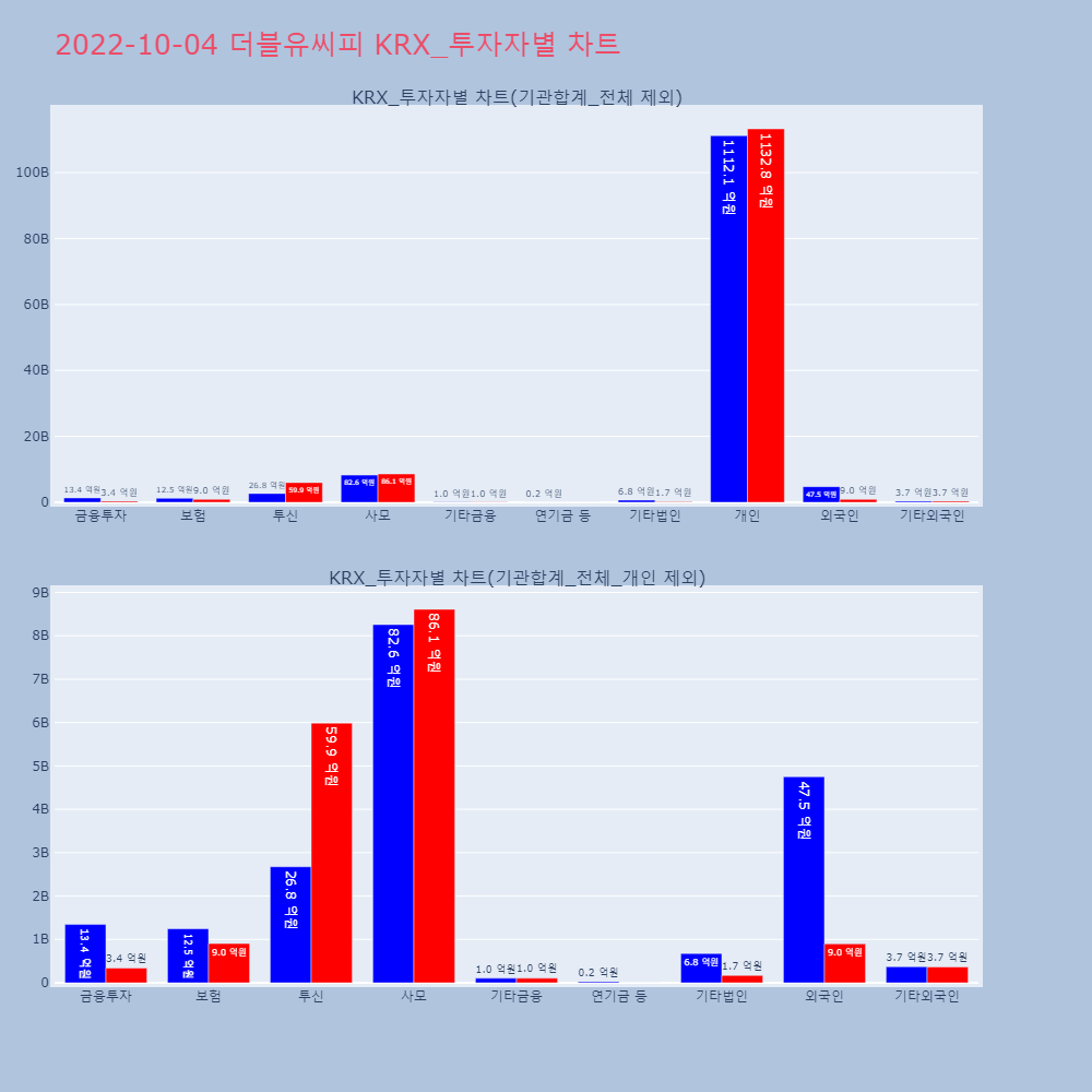 | 투자기관 | 거래량_매도 | 거래량_매수 | 거래량_순매수 | 거래대금_매도 | 거래대금_매수 | 거래대금_순매수 |