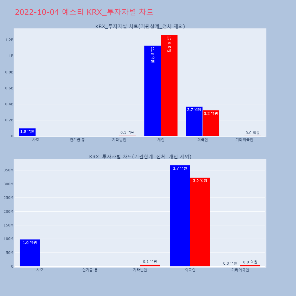 | 투자기관 | 거래량_매도 | 거래량_매수 | 거래량_순매수 | 거래대금_매도 | 거래대금_매수 | 거래대금_순매수 |