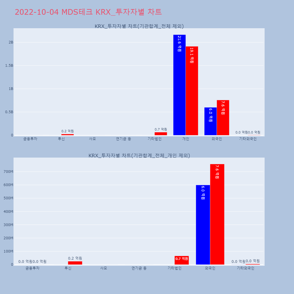 | 2 | [장중수급포착] MDS테크, 외국인 5일 연속 순매수행진... 주가 +7.69% [서울=뉴스핌] 로보뉴스 = 04일 10시 15분 현재 | 뉴스핌 | MDS테크 | 2022-10-04 10:34:41 |
