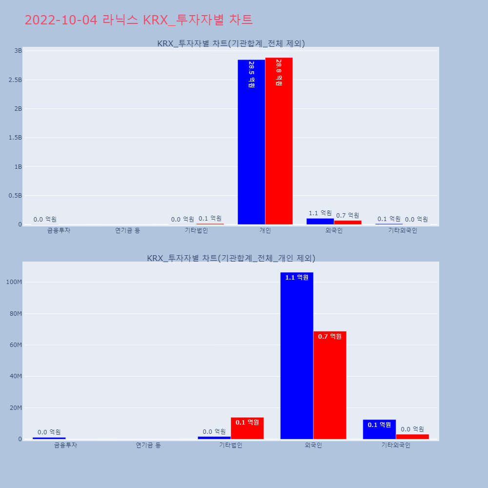 | 투자기관 | 거래량_매도 | 거래량_매수 | 거래량_순매수 | 거래대금_매도 | 거래대금_매수 | 거래대금_순매수 |