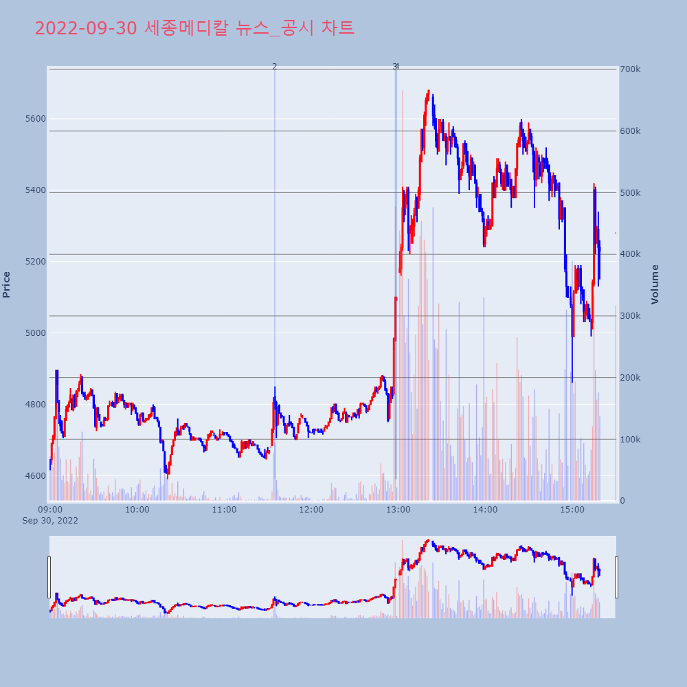 [세종메디칼(258830) (-1.52%)] (종가등락률:+12.82%)