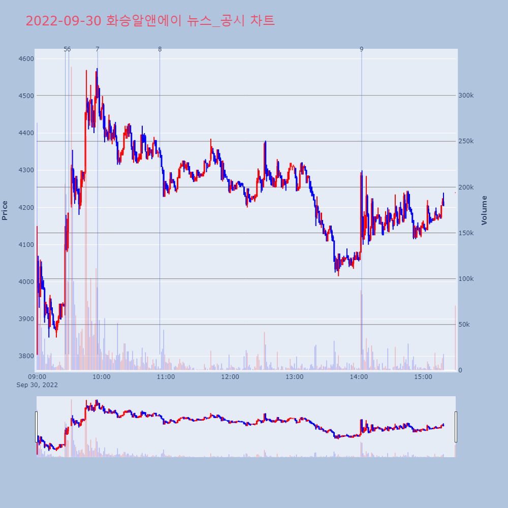 | 3 | 화승알앤에이, +10.13% VI 발동화승알앤에이가 VI가 발동했다. 전일 대비 10.13% | 조선경제 | 화승알앤에이 | 2022-09-29 10:51:09 |