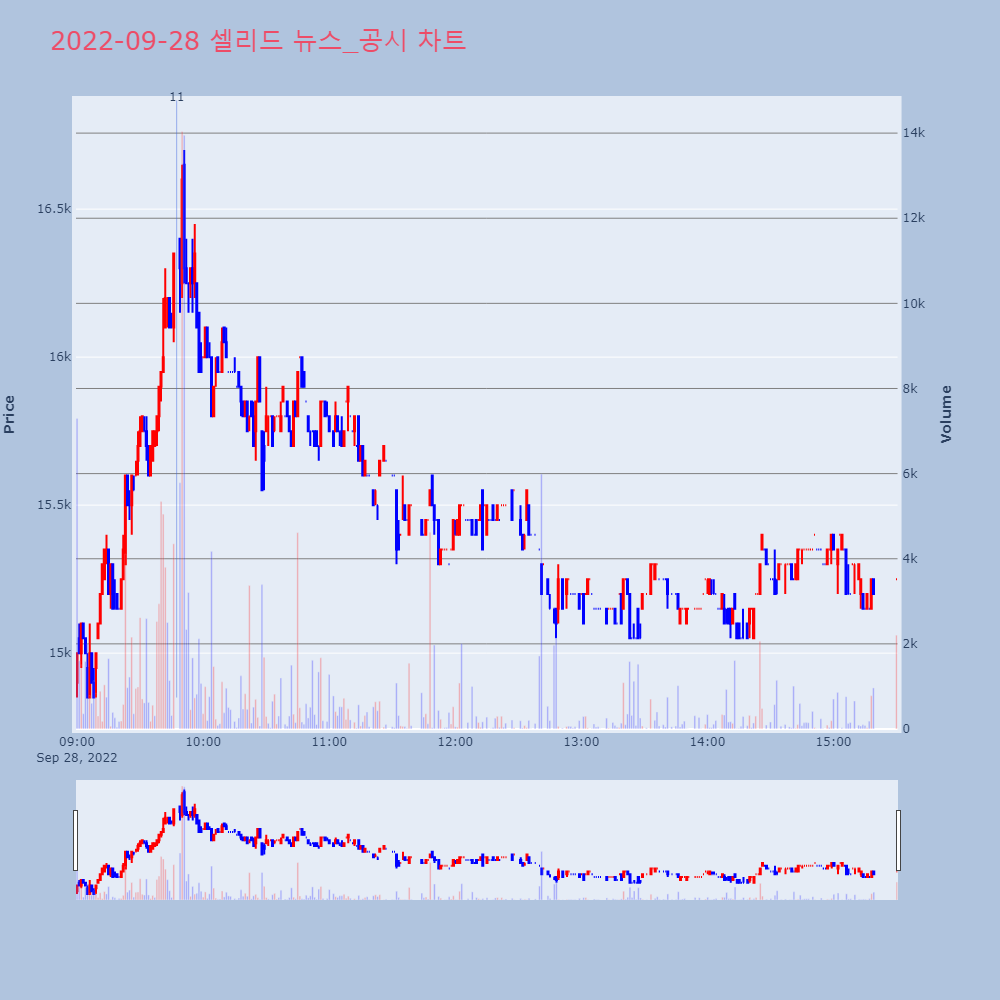 | 2 | 셀리드, +7.46% VI 발동셀리드가 VI가 발동했다. 전일 대비 7.46% 상승한 | 조선경제 | 셀리드 | 2022-09-27 14:38:22 |