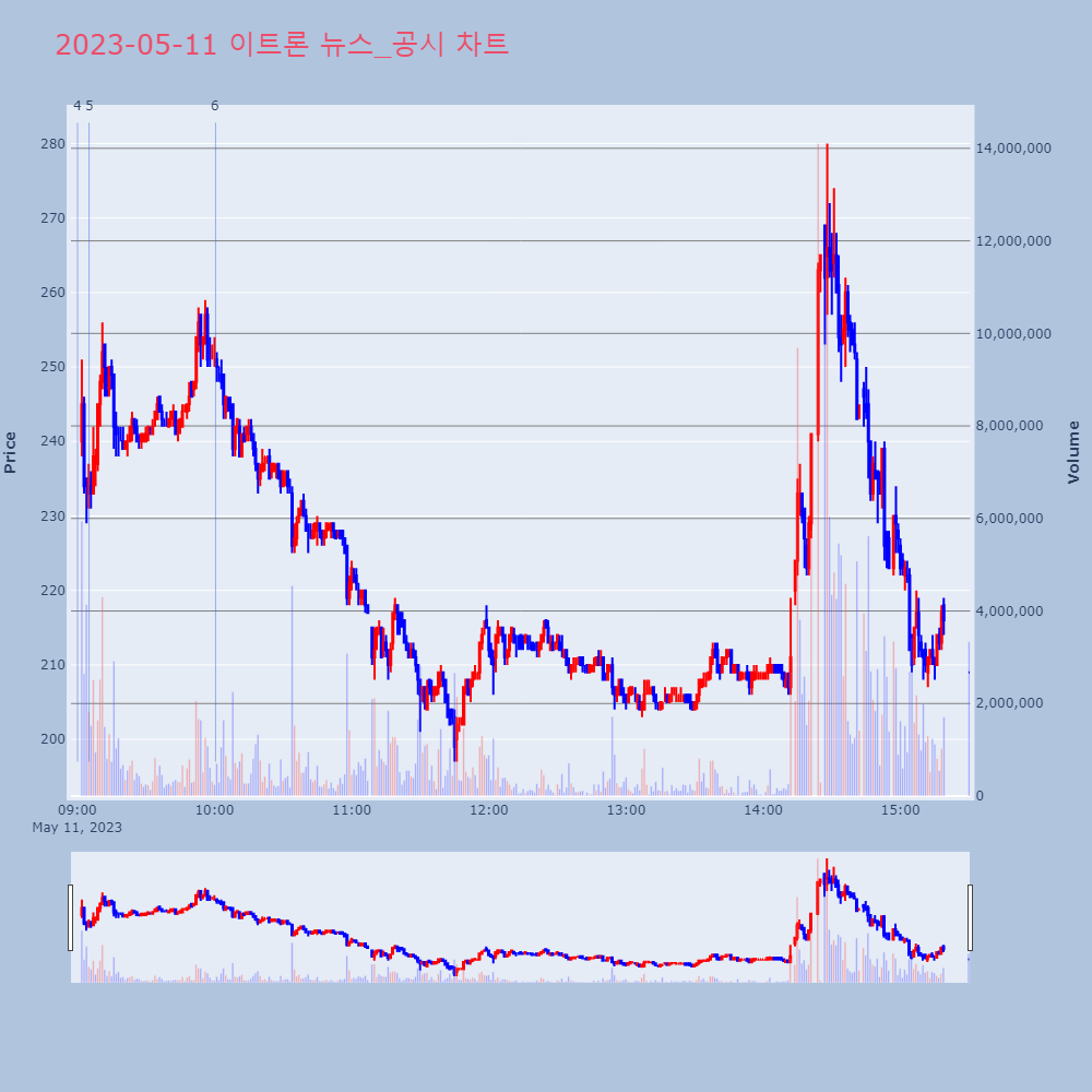 | 4 | 이트론, 0.00% VI 발동이트론이 VI가 발동했다. 현재 274원에 거래되고 있 | 조선경제 | 이트론 | 2023-05-11 09:00:07 |