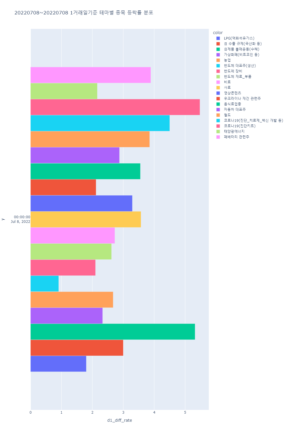 ▷이 외에 폐기물처리, 엔터테인먼트, 광고, 니켈 관련주, 마켓컬리 관련주, 패션/의류, 창투사, 제지, 출산장려정책 등의 테마가 상승률 상위를 기록.