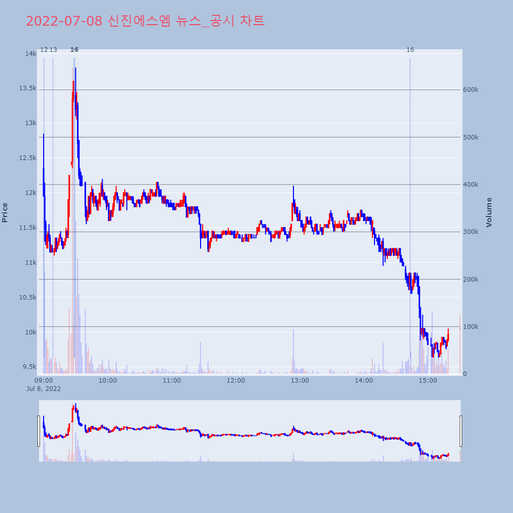 | 11 | 거래소, 신진에스엠에 현저한 시황변동 조회공시 요구▶ 하이스탁론, 선취수수료 없는 월 0.2%대 최저금리 | 이데일리 | 신진에스엠 | 2022-07-07 17:25:18 |