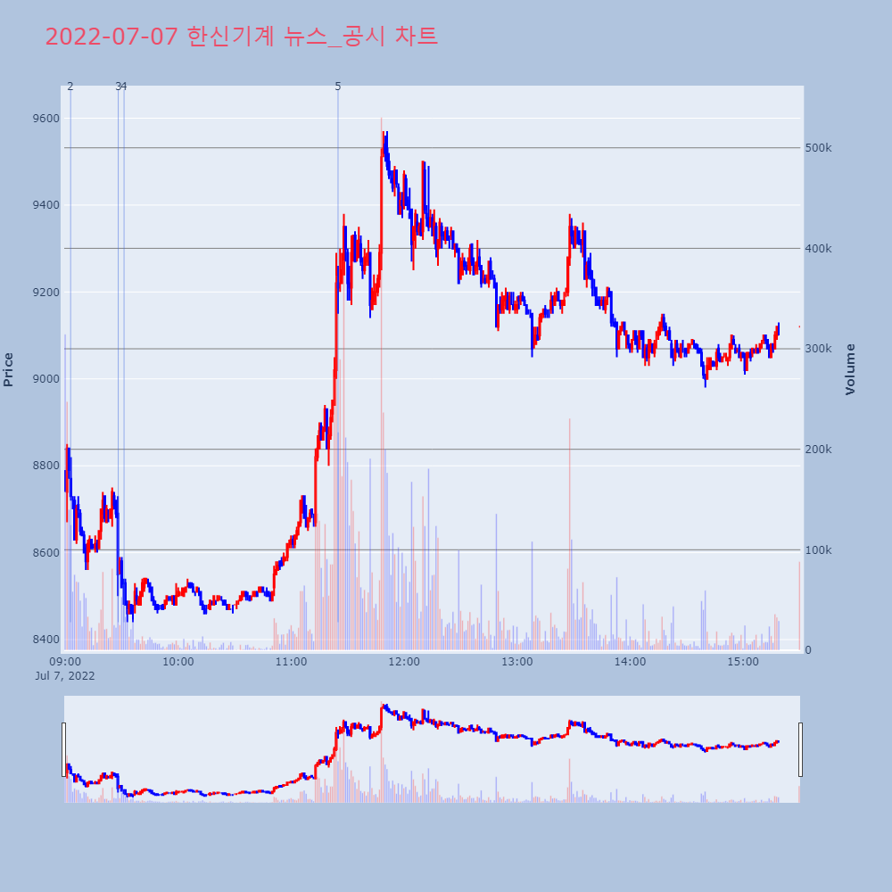 | 7 | [장초반 인기 검색 종목 PICK5] - 자비스, SK바이오사이언스, 지투파워... 최적의 매매타이밍을 실시간으로 전송하여 투자자들에게 도 | 파이낸셜 | 한신기계 | 2022-07-07 10:06:58 |