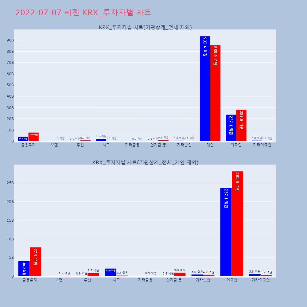 | 기타외국인 | 12,249 | 6,731 | -5,518 | 1,680,766,500 | 924,393,500 | -756,373,000 |