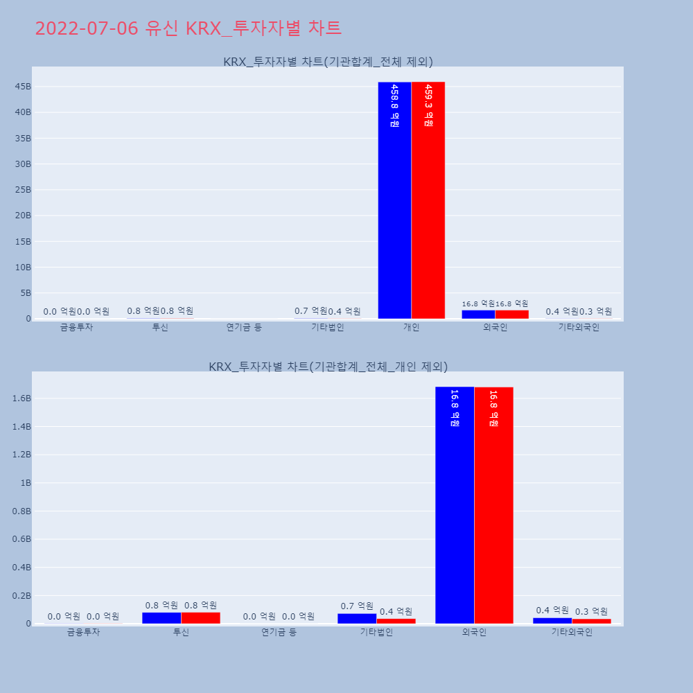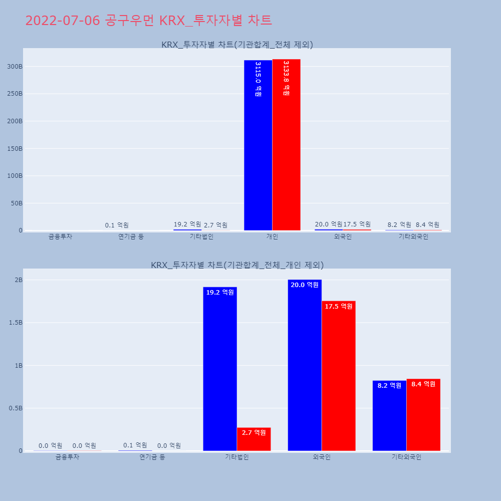 | 투자기관 | 거래량_매도 | 거래량_매수 | 거래량_순매수 | 거래대금_매도 | 거래대금_매수 | 거래대금_순매수 |