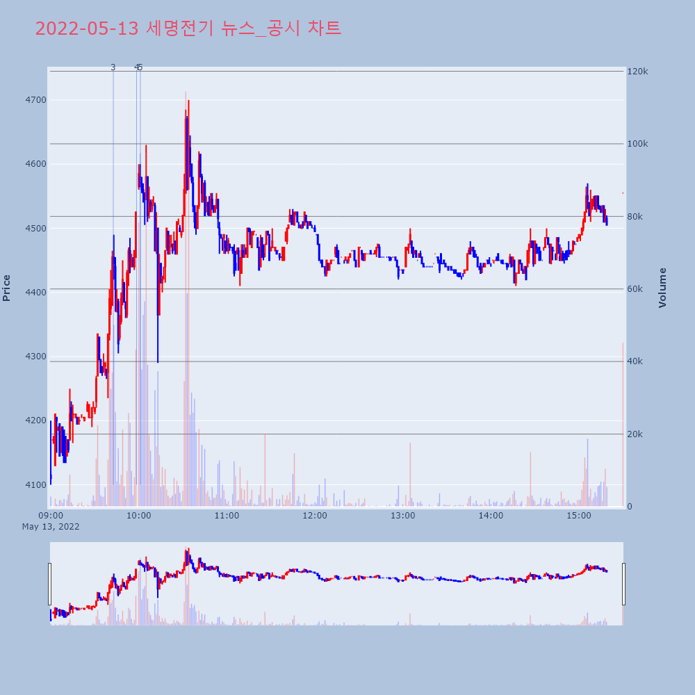 | 4 | [거래량 상위종목] 일진전기, 전일비 828.41%↑...그외 종목은?[버핏연구소=정채영 기자] 13일 오전 11시 26분 | 버핏연구소 | 일진전기 | 2022-05-13 11:37:19 |