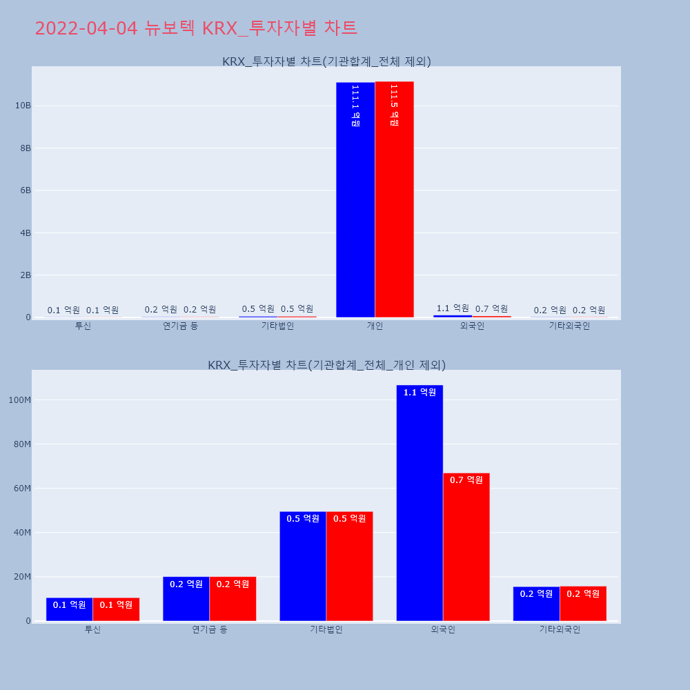 | 4 | 뉴보텍, +10.17% VI 발동뉴보텍(060260)이 VI가 발동했다. 전일 대비 1 | 조선경제 | 뉴보텍 | 2022-04-04 13:01:28 |
