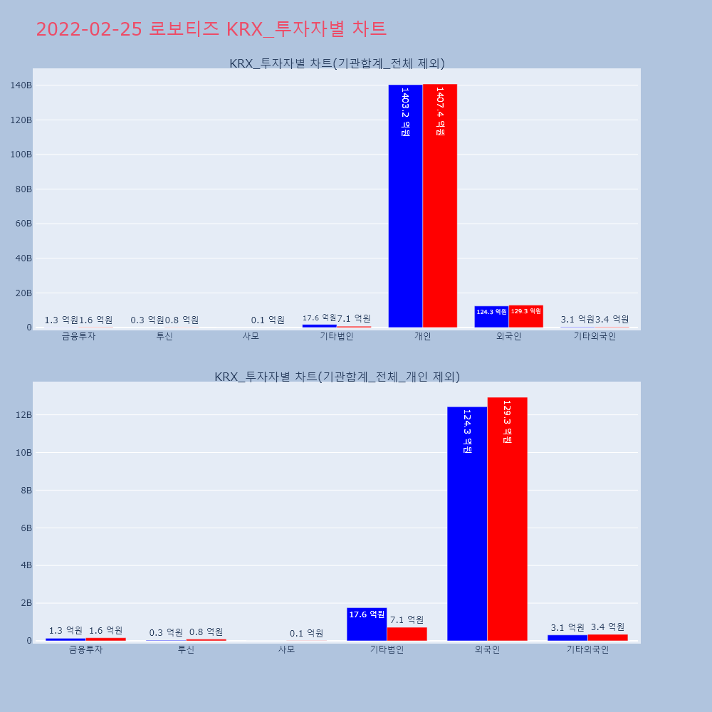 | 투자기관 | 거래량_매도 | 거래량_매수 | 거래량_순매수 | 거래대금_매도 | 거래대금_매수 | 거래대금_순매수 |