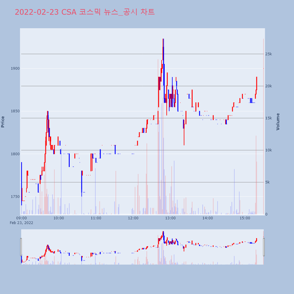 | 1 | CSA 코스믹, +13.06% VI 발동CSA 코스믹(083660)이 VI가 발동했다. 전일 | 조선경제 | CSA 코스믹 | 2022-02-22 09:12:30 |