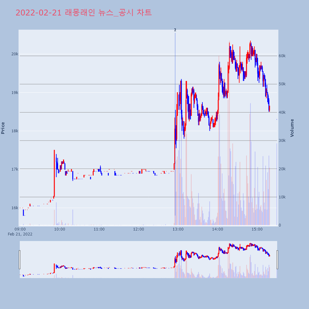| 1 | 래몽래인, +8.02% 상승폭 확대래몽래인(200350)이 상승폭을 확대하고 있다. 전일 | 조선경제 | 래몽래인 | 2022-02-21 12:55:33 |