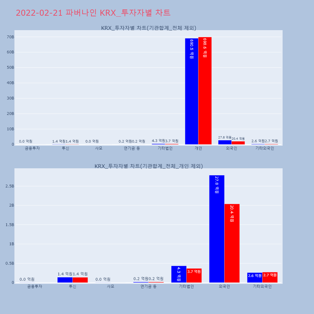 | 투자기관 | 거래량_매도 | 거래량_매수 | 거래량_순매수 | 거래대금_매도 | 거래대금_매수 | 거래대금_순매수 |