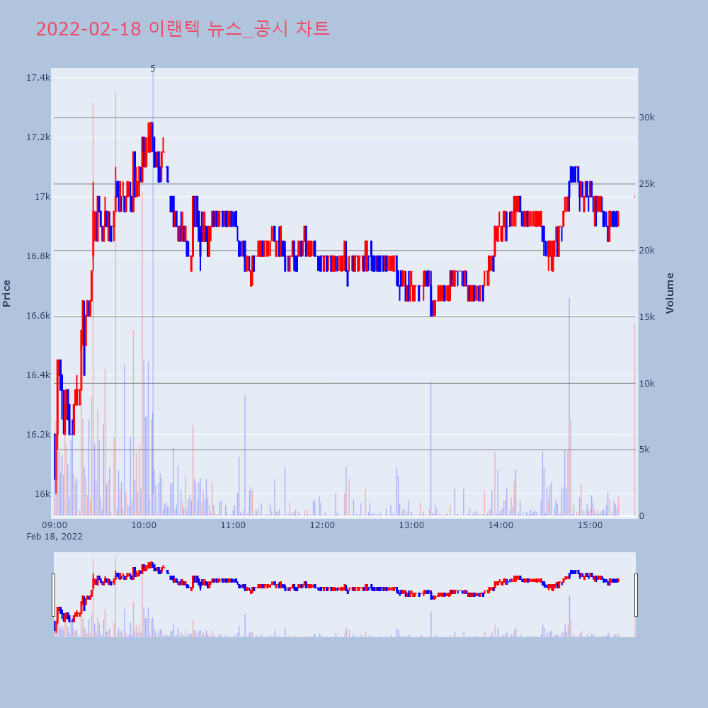 | 3 | [특징주] 이랜텍, KT&G와 전자담배 디바이스 공급계약 체결에 4%↑ 제목 : [특징주] 이랜텍, KTG와 약 3693억원 | 인포스탁 | 이랜텍 | 2022-02-17 09:18:50 |