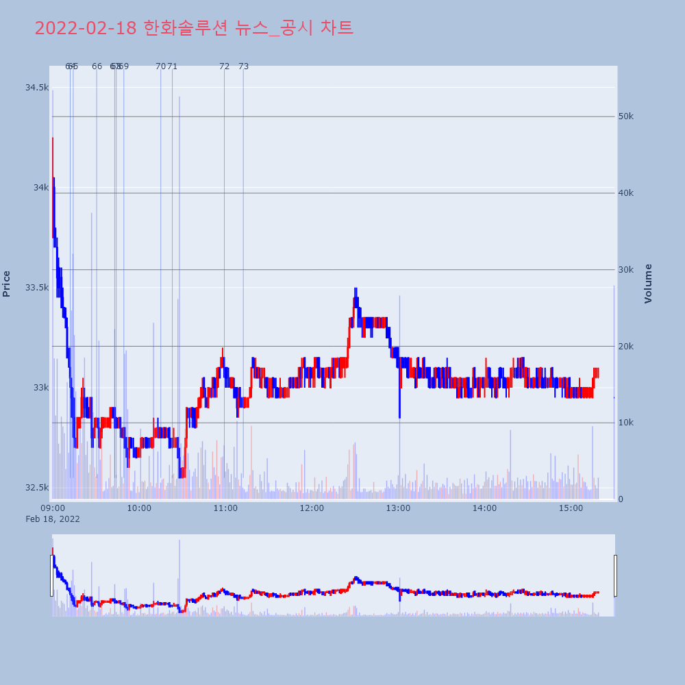 | 33 | “여천NCC 공장 사고, 실적에 영향 크지 않을 것”-한화솔루션 컨콜▶ 하이스탁론, 선취수수료 없는 월 0.2%대 최저금리 | 이데일리 | 한화솔루션 | 2022-02-17 15:21:24 |