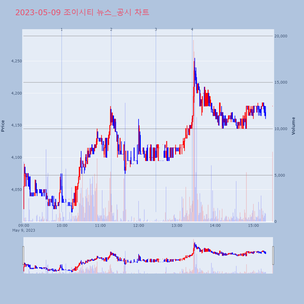 | 4 | 조이시티, 신작 게임 ‘해피시티’ BI 공개…연내 출시 목표 제목 :조이시티, 신작 게임 ‘해피시티’ BI 공개…연 | 인포스탁 | 조이시티 | 2023-05-09 13:24:05 |
