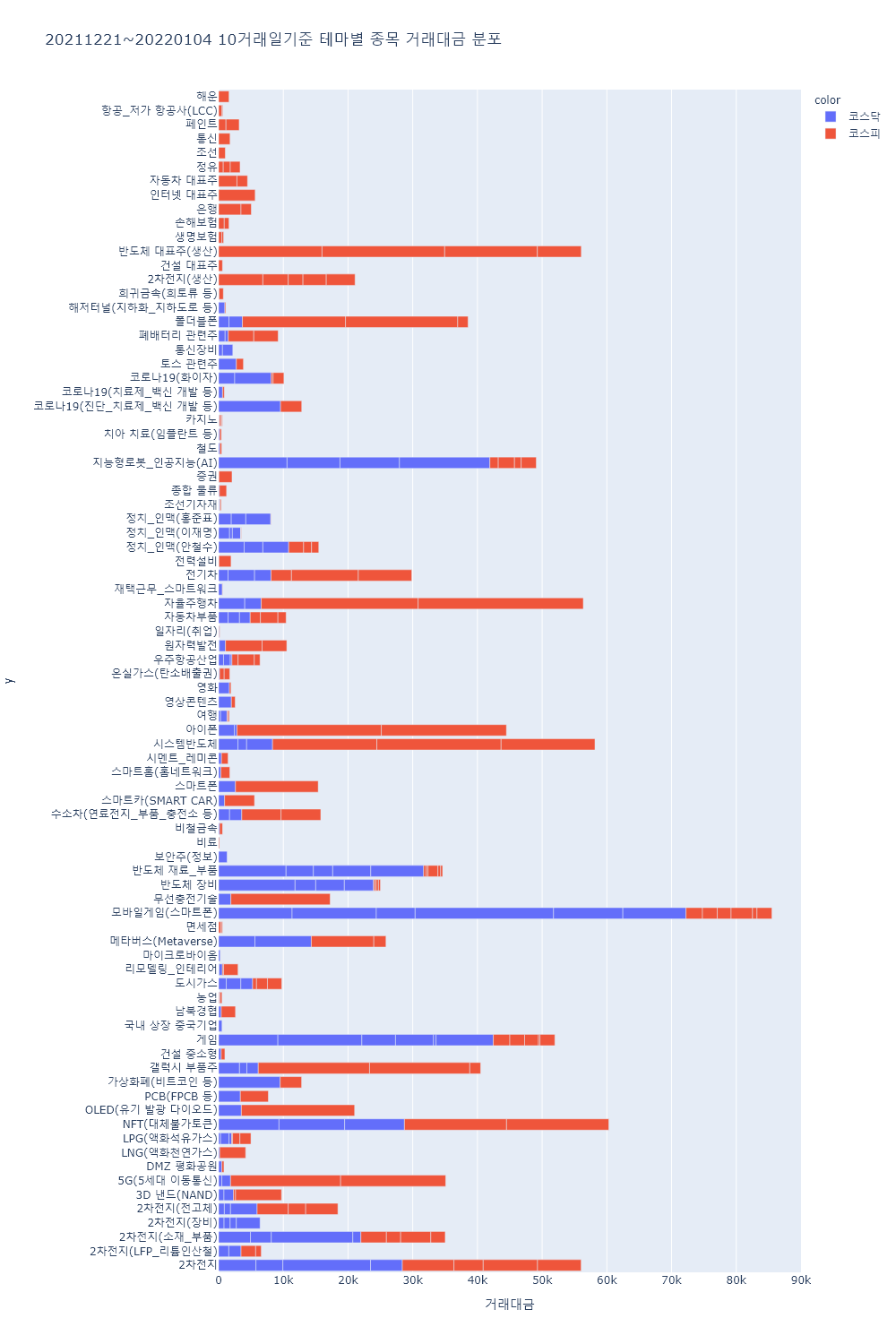| 테마 | 내용 | 종목수 | 테마 총금액 | 테마 평균(전체/종목수) |