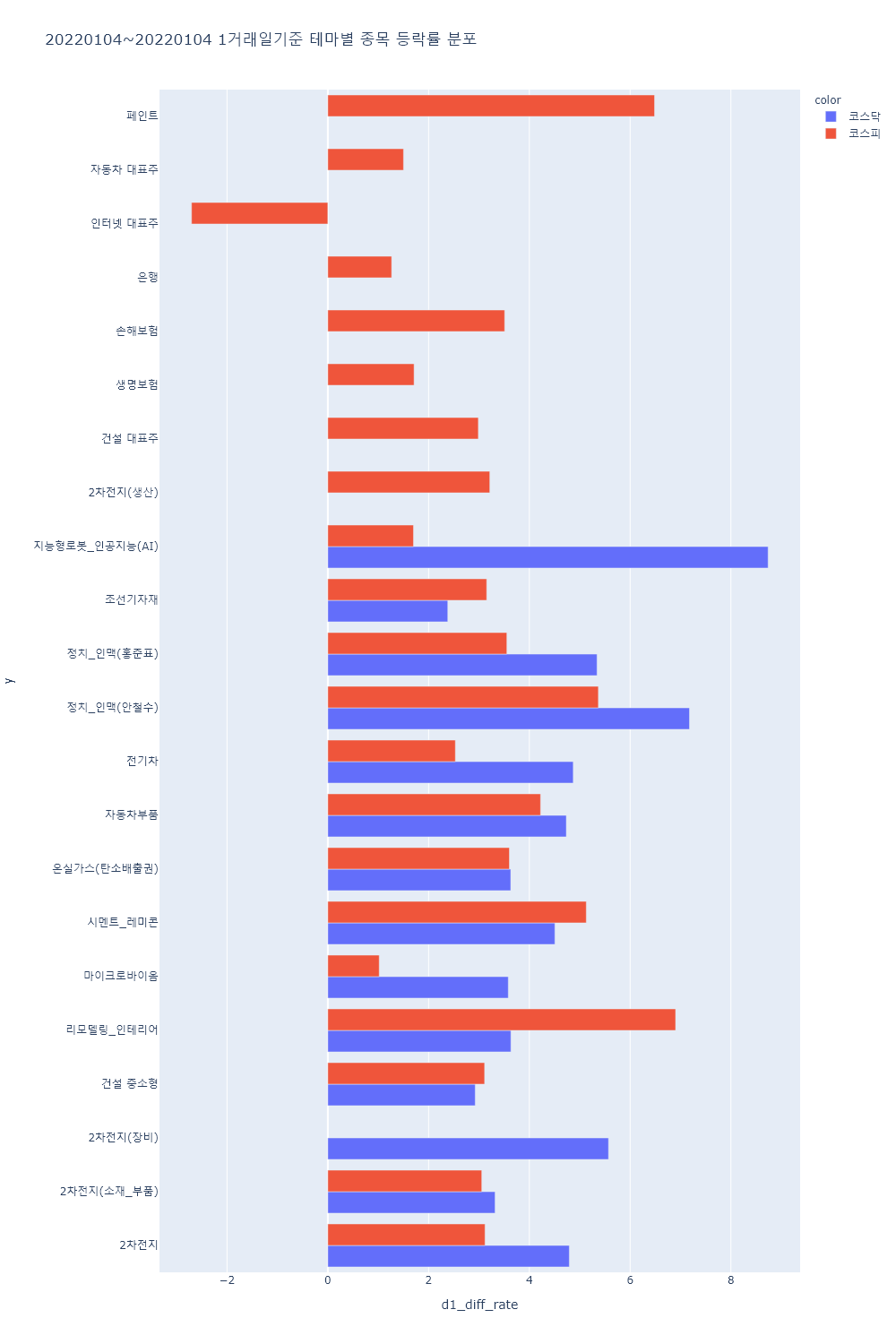 ▷국민의힘 대선후보 교체론 부각 등에 정치/인맥(홍준표) 테마 상승.