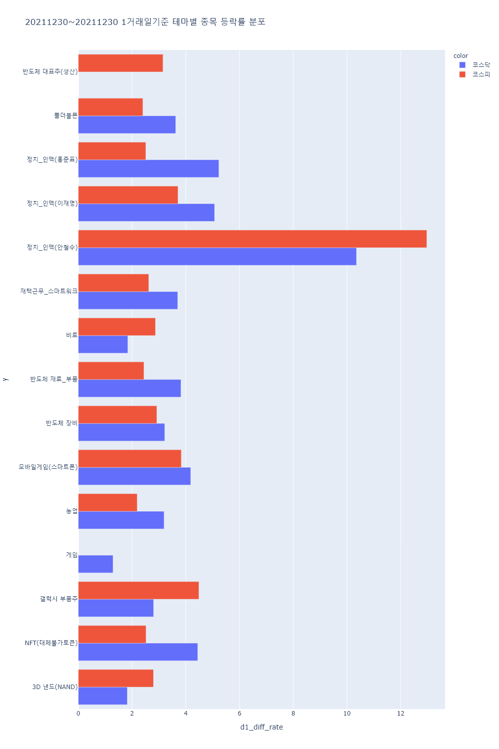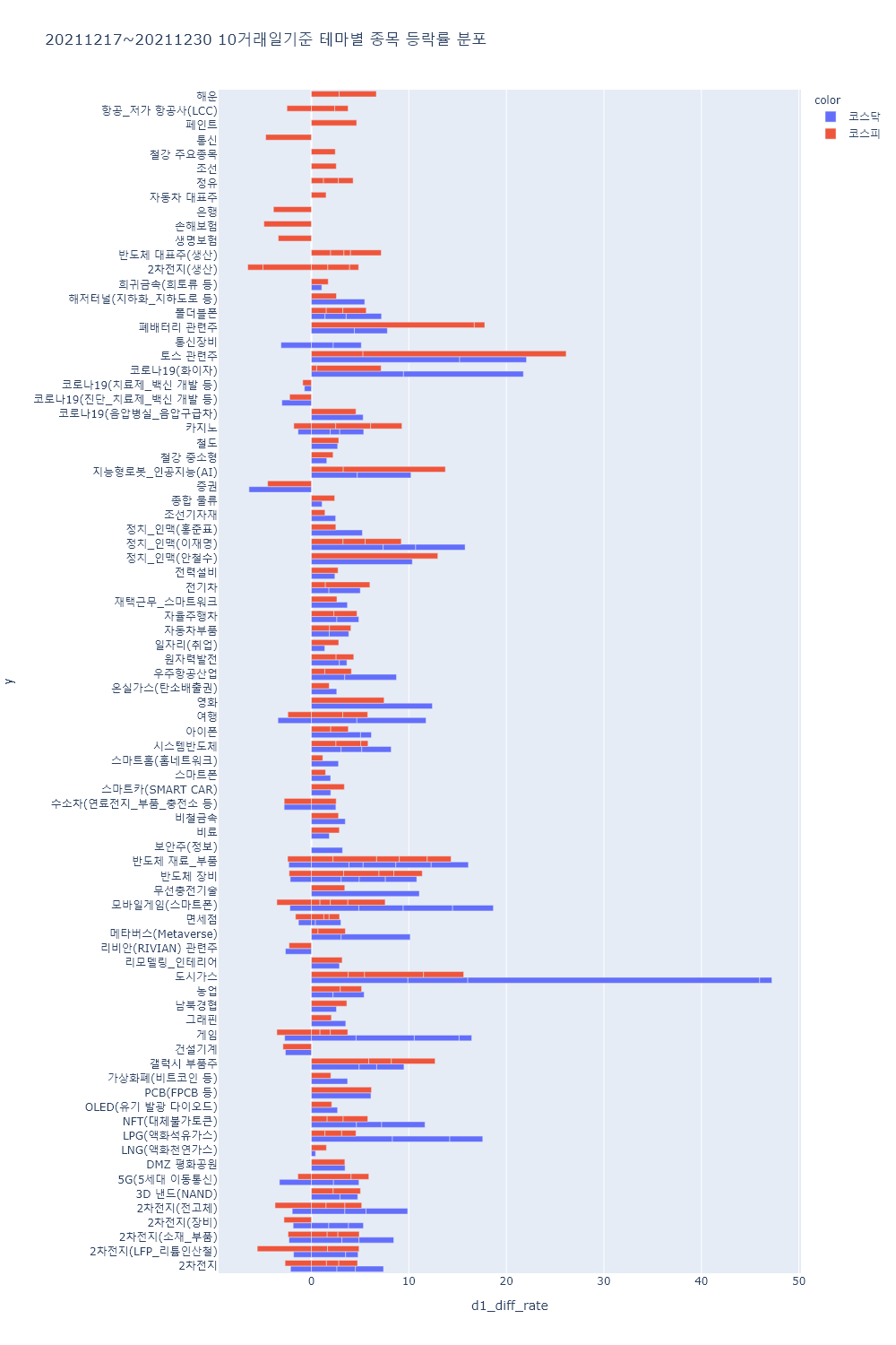 ▷이 외에 국내 상장 중국기업, 영화, 영상콘텐츠, 보안주(정보), PCB(FPCB 등), 5G, 메타버스 등의 테마가 상승률 상위를 기록.