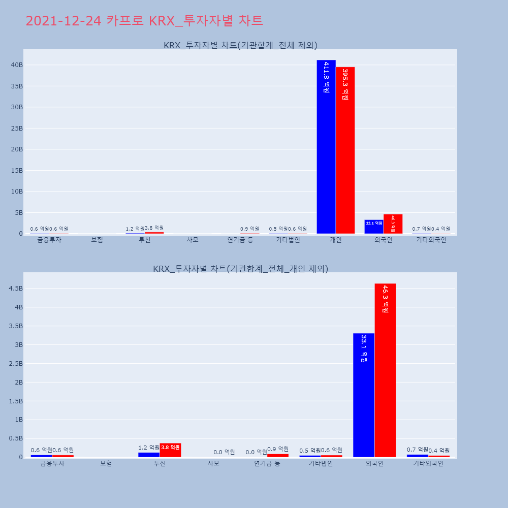 | 투자기관 | 거래량_매도 | 거래량_매수 | 거래량_순매수 | 거래대금_매도 | 거래대금_매수 | 거래대금_순매수 |