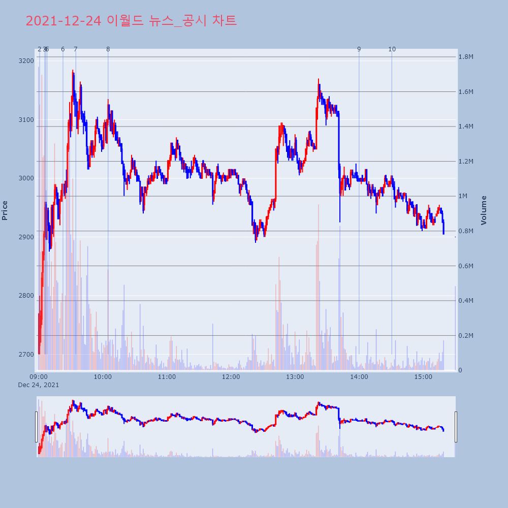 | 8 | 위지윅스튜디오, +11.86% VI 발동위지윅스튜디오(299900)가 VI가 발동했다. 전일 | 조선경제 | 위지윅스튜디오 | 2021-12-24 11:44:01 |