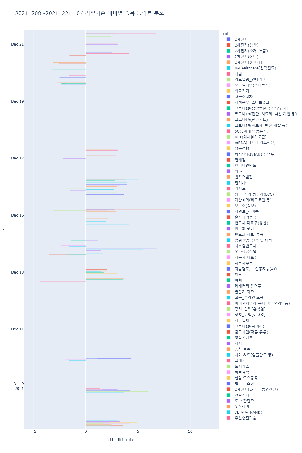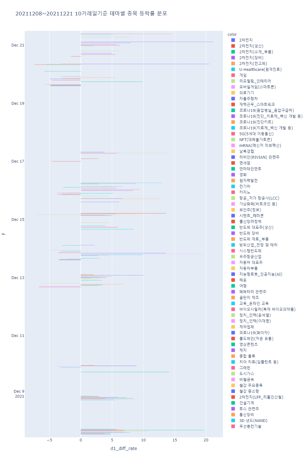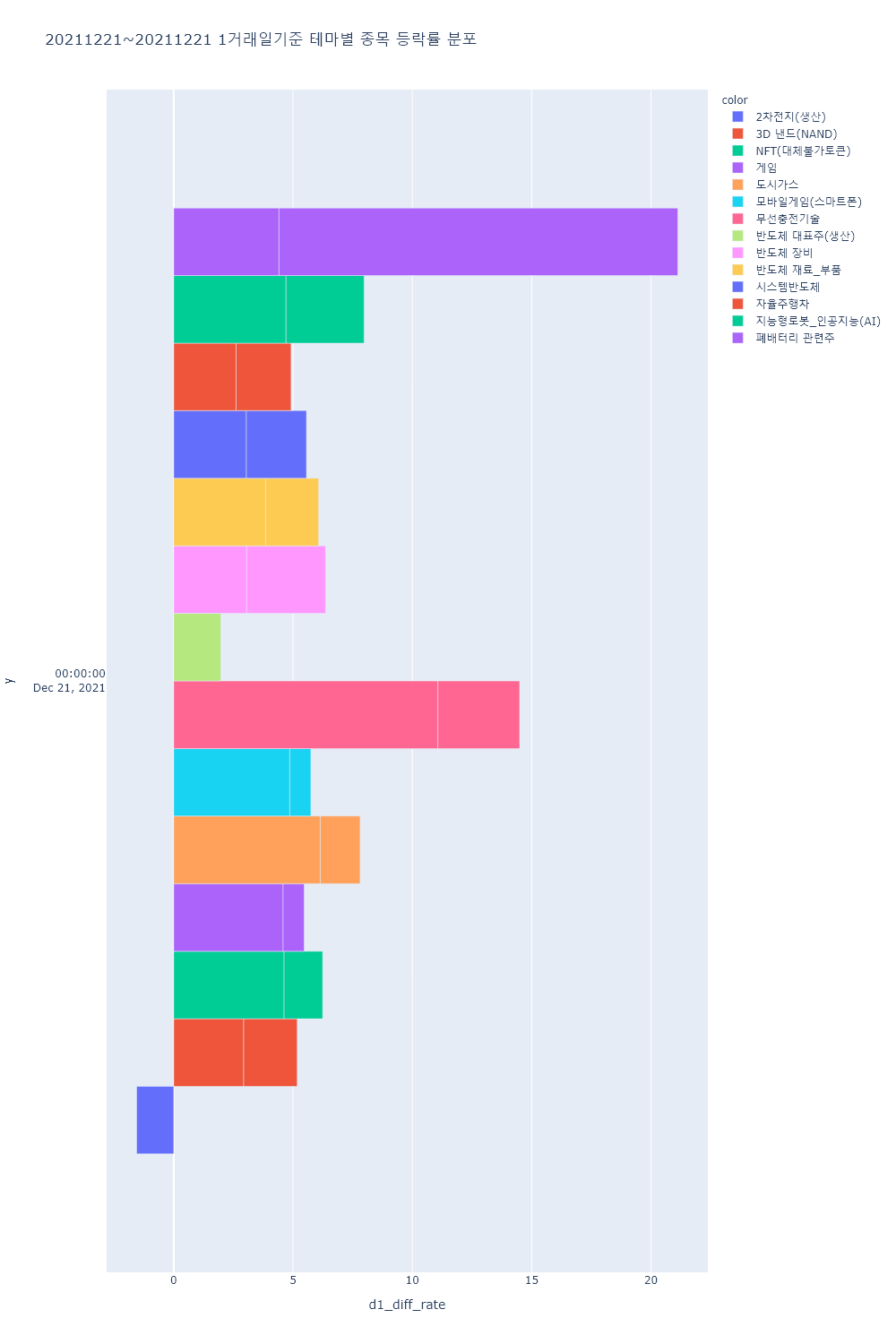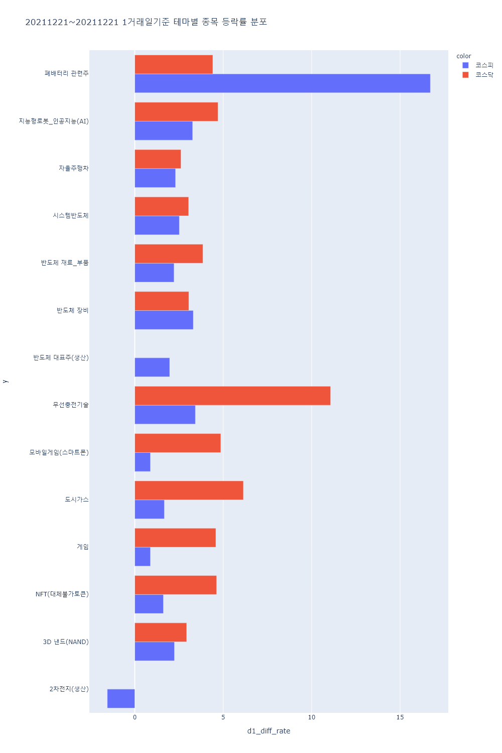 ▷이 외 밥솥, 스마트팩토리(스마트공장), 크래프톤 관련주, RFID(NFC 등), SNS, 캐릭터상품, 백화점, 가상화폐(비트코인 등), 두나무 관련주, 4차산업 수혜주, 웹툰, LED장비, 모바일콘텐츠, 마리화나(대마), IT 대표주, 음원/음반 등의 테마가 상승률 상위를 기록.