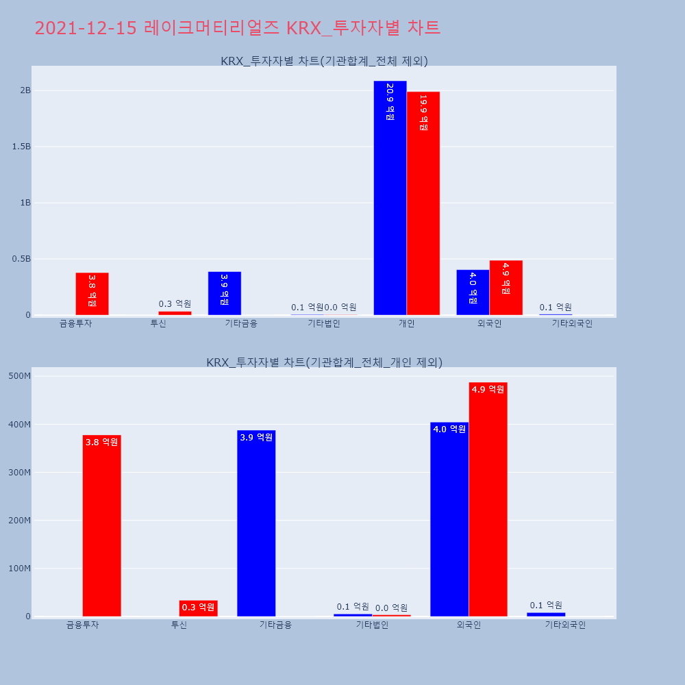 | 투자기관 | 거래량_매도 | 거래량_매수 | 거래량_순매수 | 거래대금_매도 | 거래대금_매수 | 거래대금_순매수 |