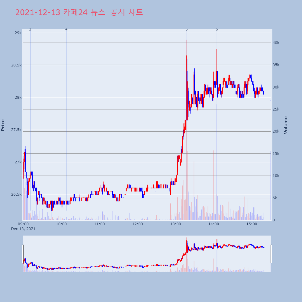 | 5 | 카페24, +8.00% 상승폭 확대카페24(042000)가 상승폭을 확대하고 있다. 전일 | 조선경제 | 카페24 | 2021-12-13 13:17:39 |