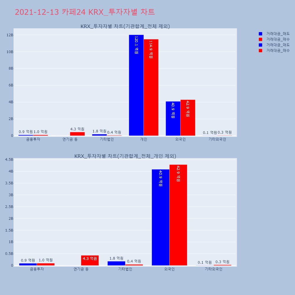 | 투자기관 | 거래량_매도 | 거래량_매수 | 거래량_순매수 | 거래대금_매도 | 거래대금_매수 | 거래대금_순매수 |