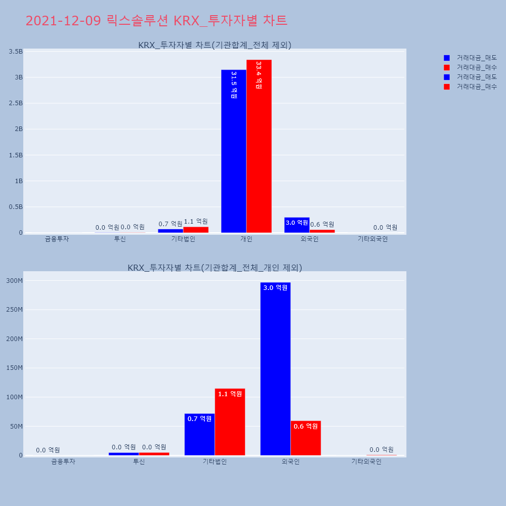 | 투자기관 | 거래량_매도 | 거래량_매수 | 거래량_순매수 | 거래대금_매도 | 거래대금_매수 | 거래대금_순매수 |
