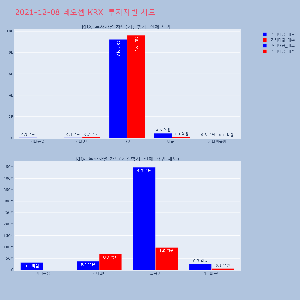 | 투자기관 | 거래량_매도 | 거래량_매수 | 거래량_순매수 | 거래대금_매도 | 거래대금_매수 | 거래대금_순매수 |