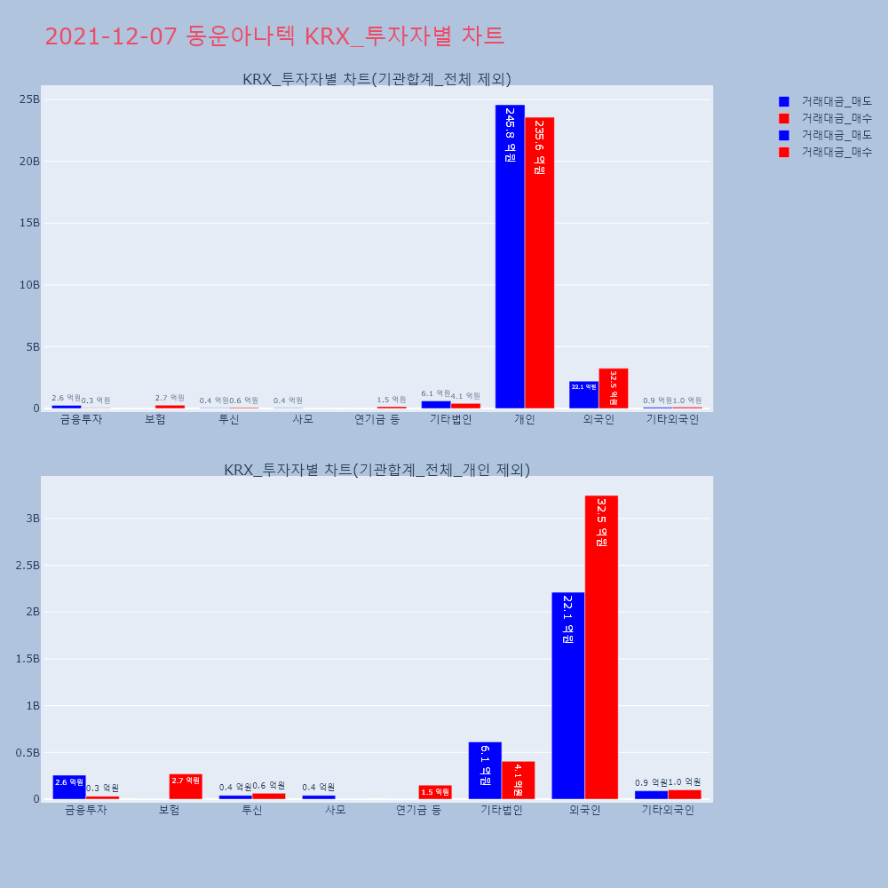 | 투자기관 | 거래량_매도 | 거래량_매수 | 거래량_순매수 | 거래대금_매도 | 거래대금_매수 | 거래대금_순매수 |