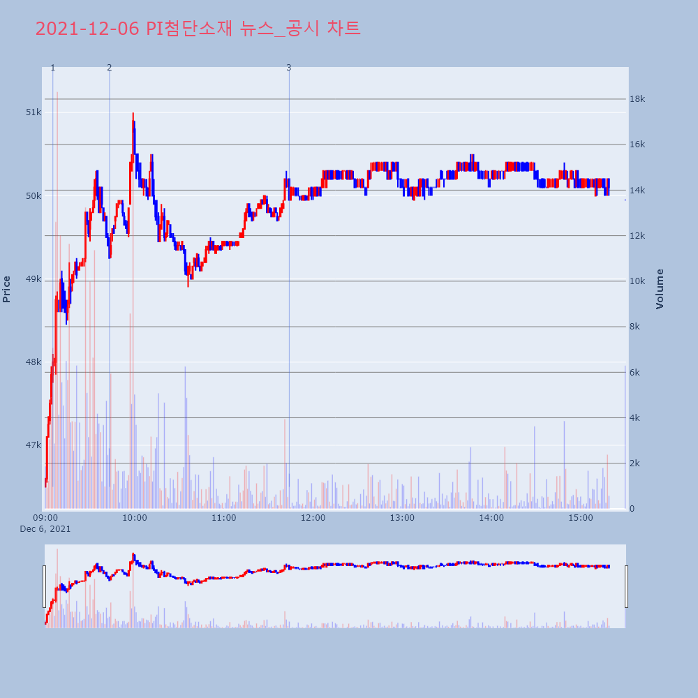 | 3 | [장중수급포착] PI첨단소재, 외국인/기관 동시 순매수… 주가 +7.96% [서울=뉴스핌] 로보뉴스 = 06일 11시 42분 현재 | 뉴스핌 | PI첨단소재 | 2021-12-06 11:44:00 |
