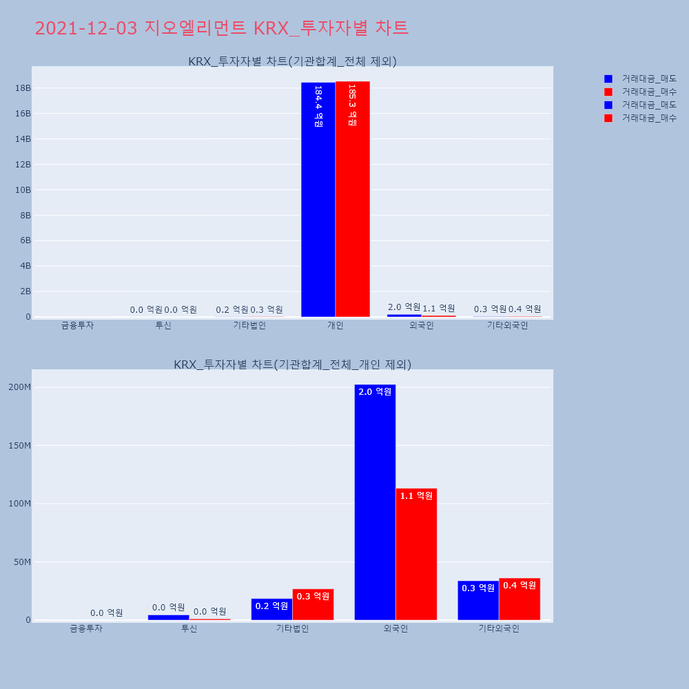 | 투자기관 | 거래량_매도 | 거래량_매수 | 거래량_순매수 | 거래대금_매도 | 거래대금_매수 | 거래대금_순매수 |