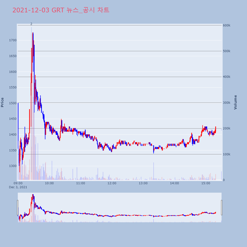 | 2 | GRT(900290) 거래재개 첫날 급등 +10.00% 제목 : GRT(900290)거래재개 첫날 급등 +10 | 인포스탁 | GRT | 2021-12-03 09:25:45 |