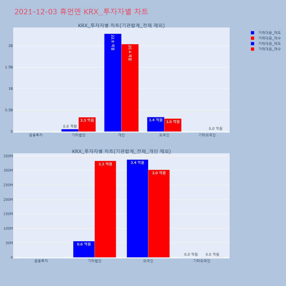 | 투자기관 | 거래량_매도 | 거래량_매수 | 거래량_순매수 | 거래대금_매도 | 거래대금_매수 | 거래대금_순매수 |