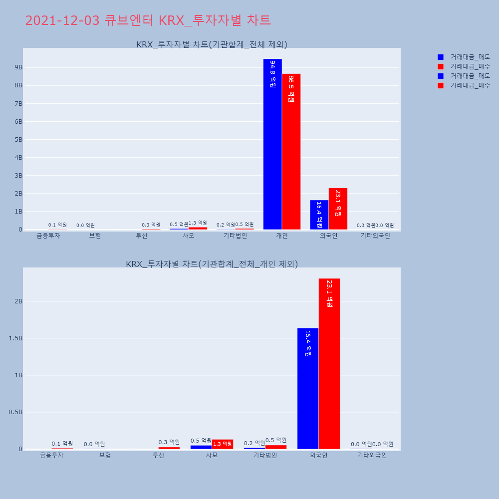 | 투자기관 | 거래량_매도 | 거래량_매수 | 거래량_순매수 | 거래대금_매도 | 거래대금_매수 | 거래대금_순매수 |