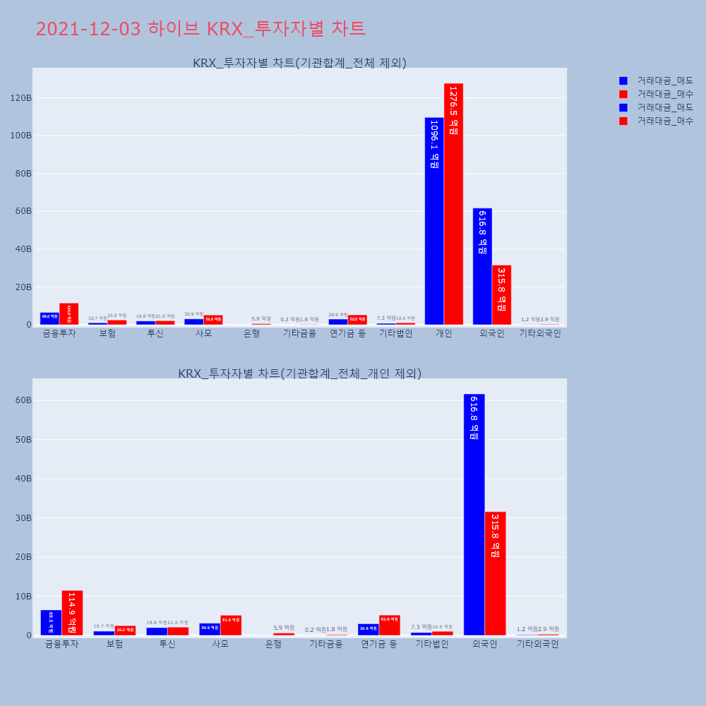 | 투자기관 | 거래량_매도 | 거래량_매수 | 거래량_순매수 | 거래대금_매도 | 거래대금_매수 | 거래대금_순매수 |