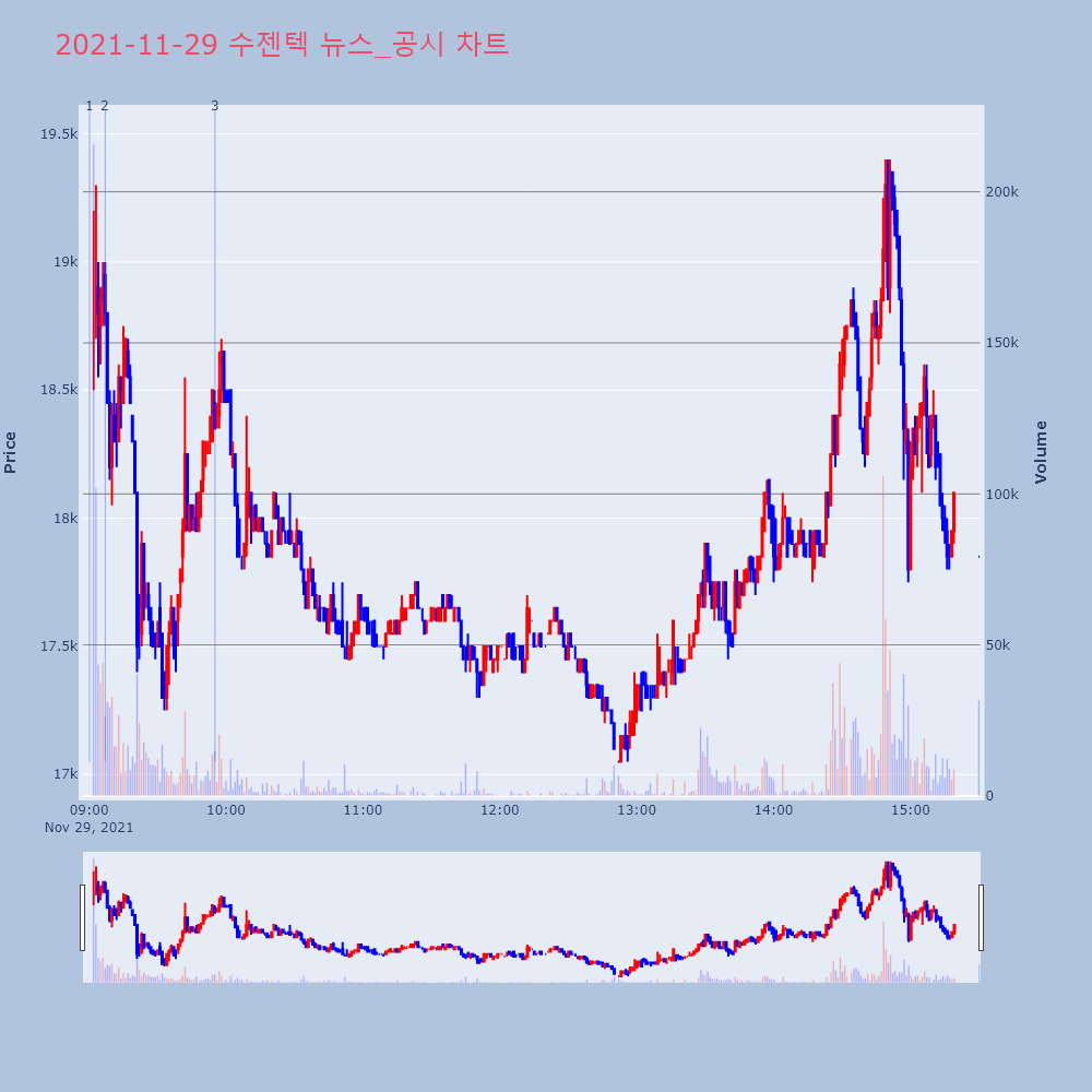 | 1 | 수젠텍, 0.00% VI 발동수젠텍(253840)이 VI가 발동했다. 현재 16,5 | 조선경제 | 수젠텍 | 2021-11-29 09:00:11 |