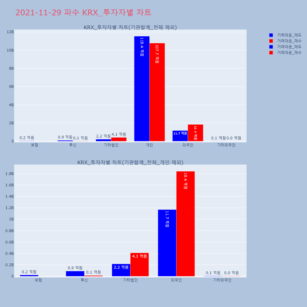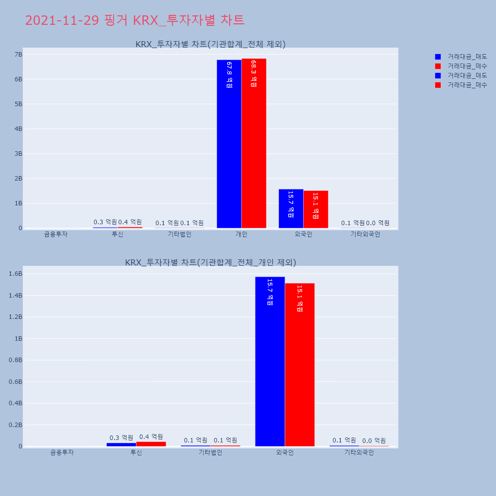 | 투자기관 | 거래량_매도 | 거래량_매수 | 거래량_순매수 | 거래대금_매도 | 거래대금_매수 | 거래대금_순매수 |