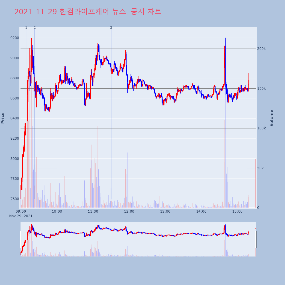 | 3 | [장중수급포착] 한컴라이프케어, 외국인 21,000주 대량 순매수... 주가 +15[서울=뉴스핌] 로보뉴스 = 29일 11시 30분 현재 | 뉴스핌 | 한컴라이프케어 | 2021-11-29 11:30:16 |