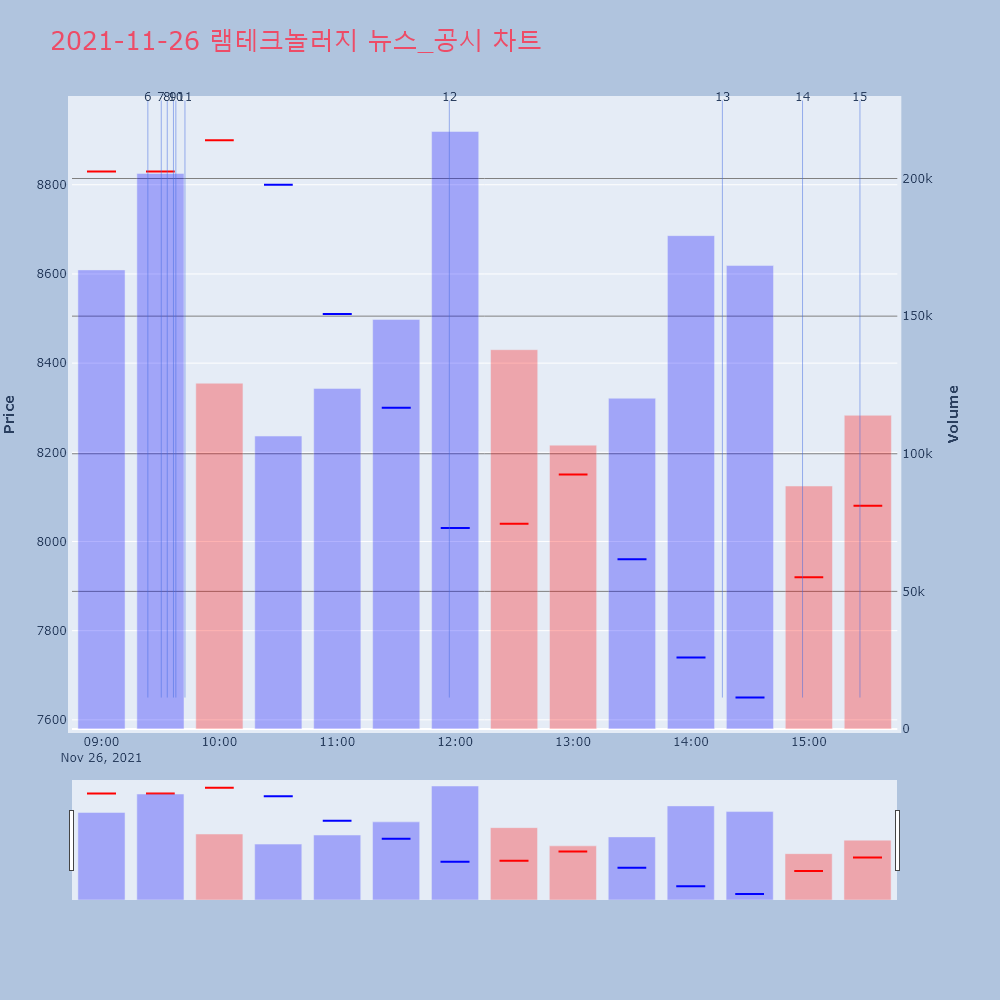 | 12 | [특징주] 램테크놀러지, 가짜뉴스·부사장 지분 매도에 13% 급락[컨슈머타임스 이연경 기자] 램테크놀러지 주가가 가짜뉴 | 컨슈머타임스 | 램테크놀러지 | 2021-11-26 11:57:01 |