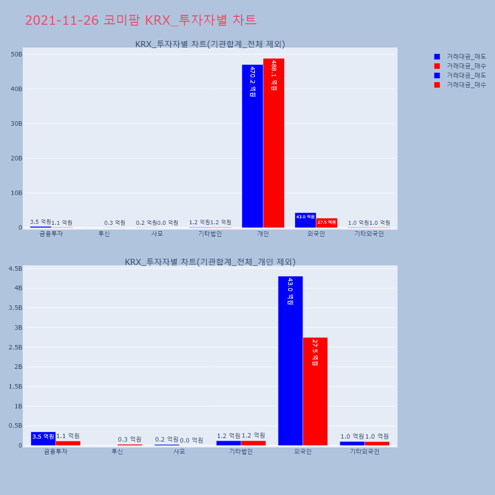 | 투자기관 | 거래량_매도 | 거래량_매수 | 거래량_순매수 | 거래대금_매도 | 거래대금_매수 | 거래대금_순매수 |