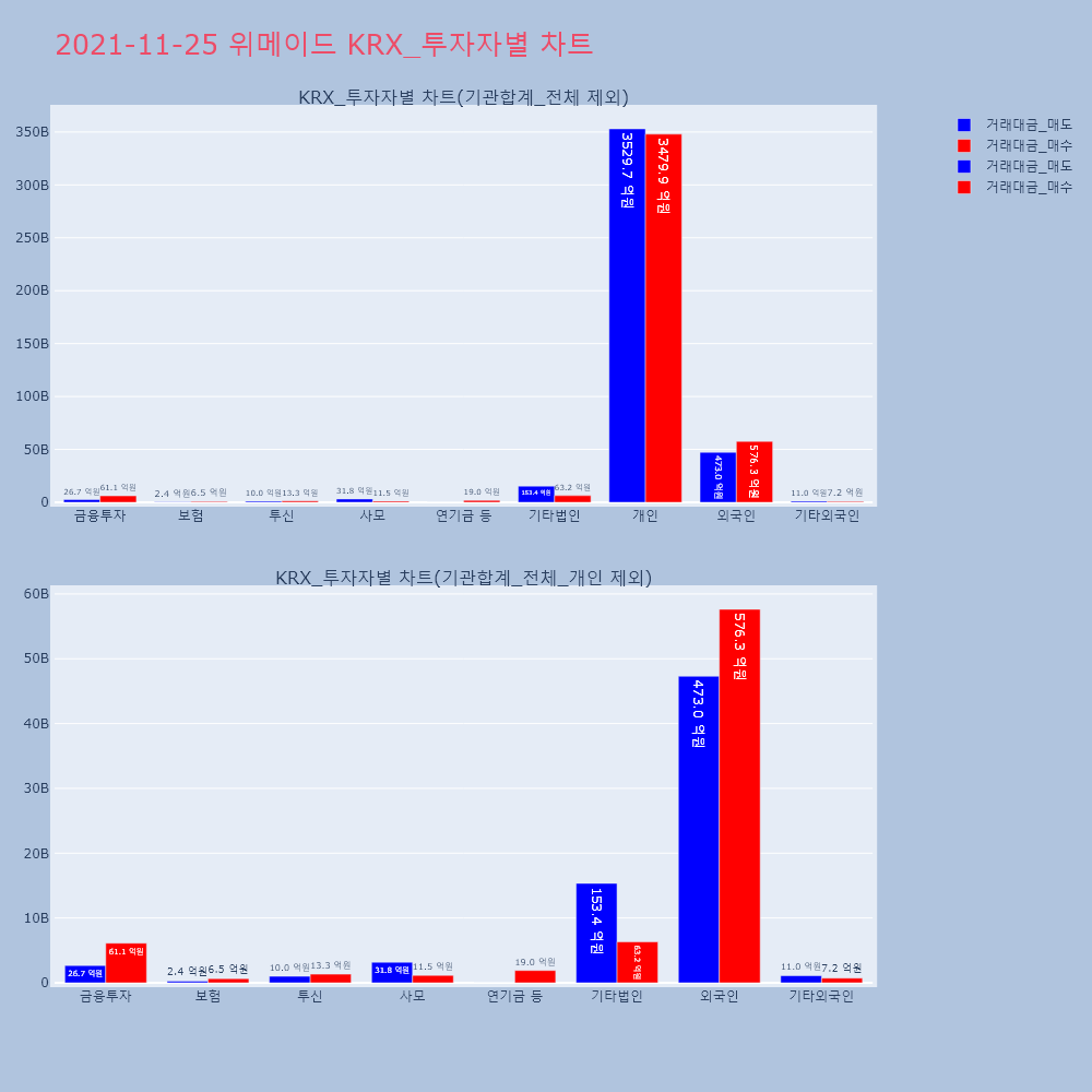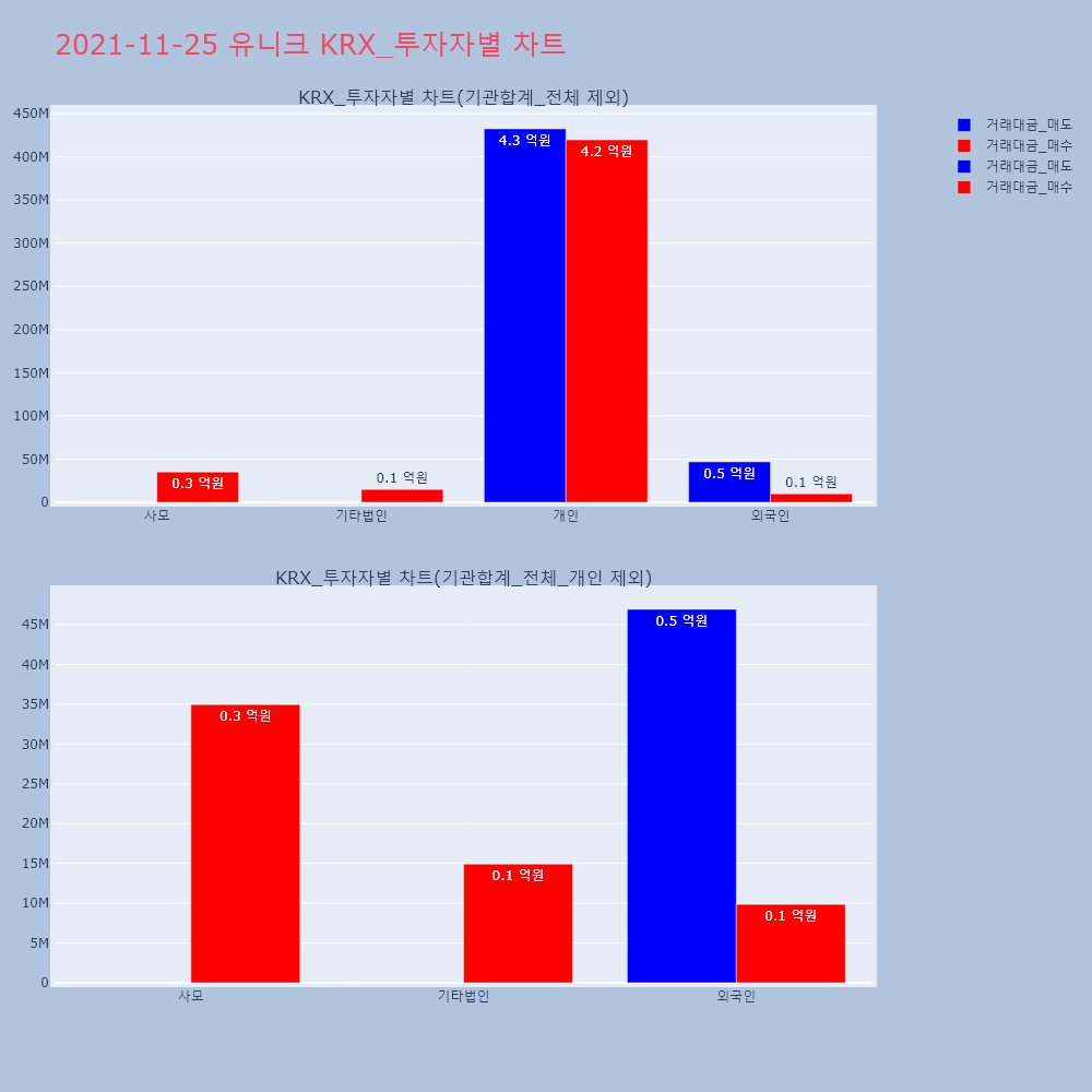 | 투자기관 | 거래량_매도 | 거래량_매수 | 거래량_순매수 | 거래대금_매도 | 거래대금_매수 | 거래대금_순매수 |